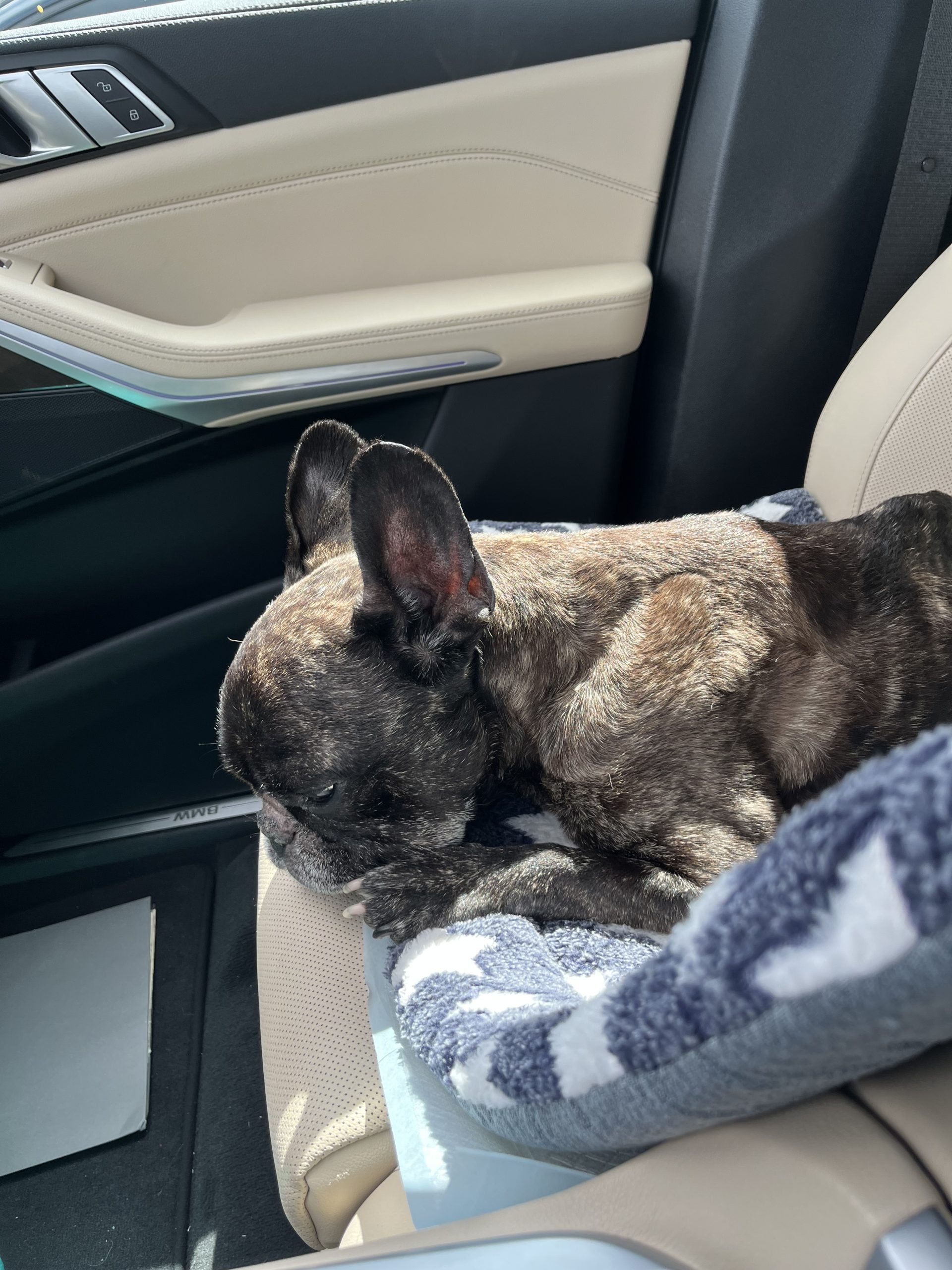 At night, Bane sleeps in the bed like the VIP he is. If he’s expressed well before bedtime and wears his belly band, he can hold it overnight.