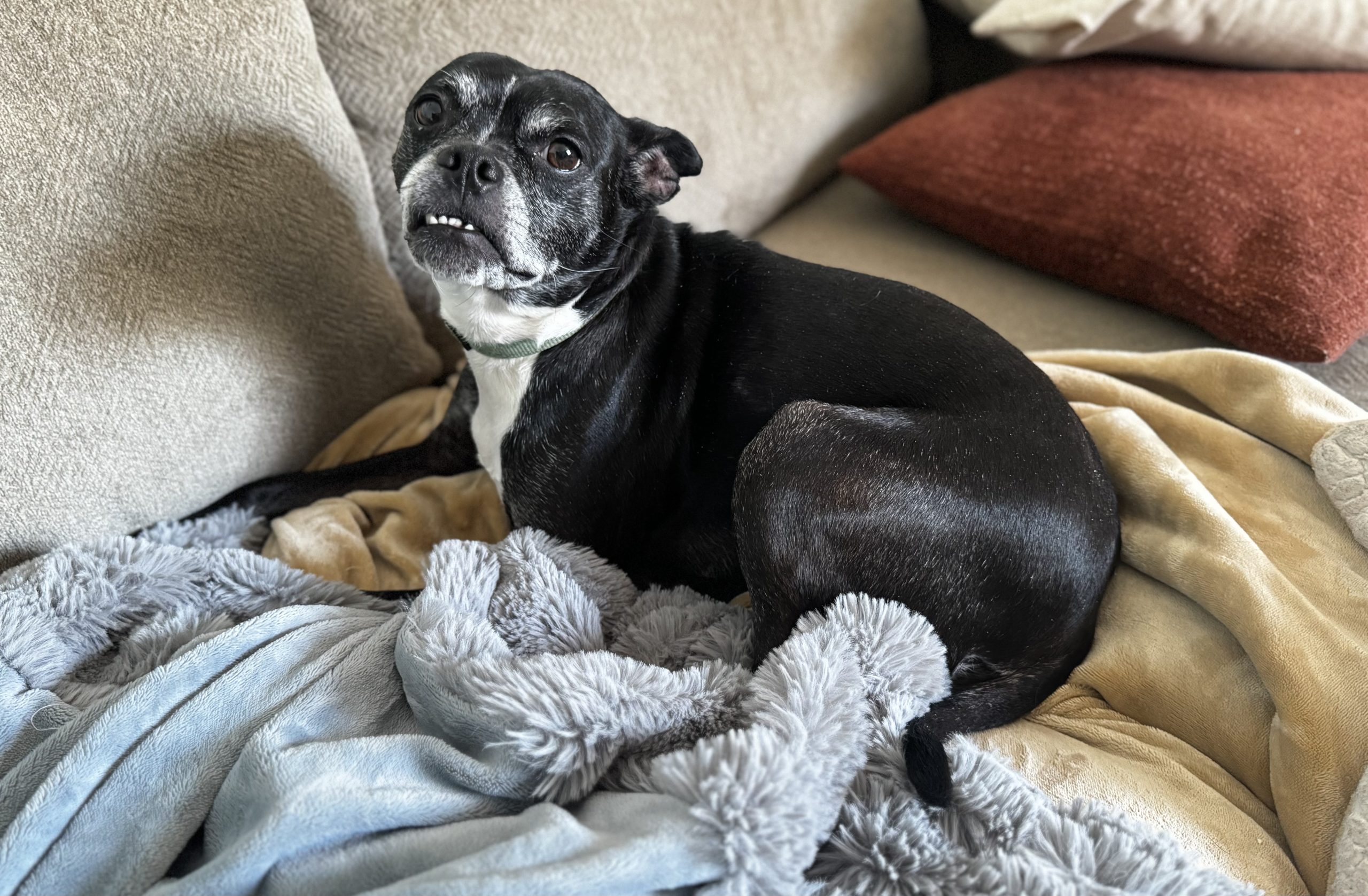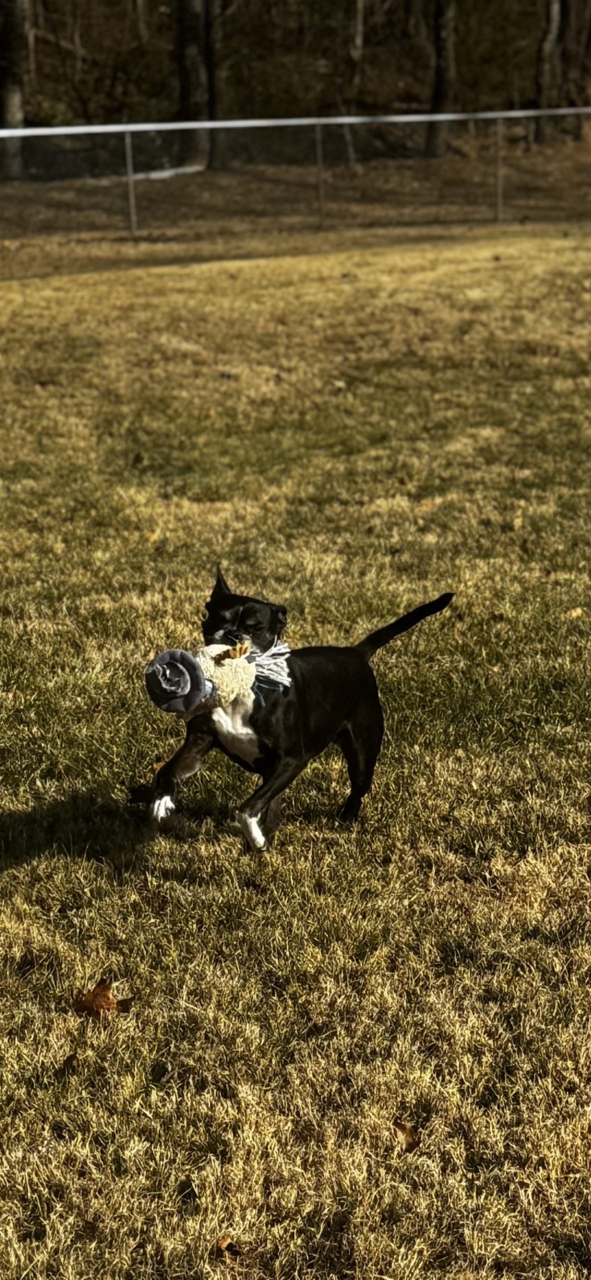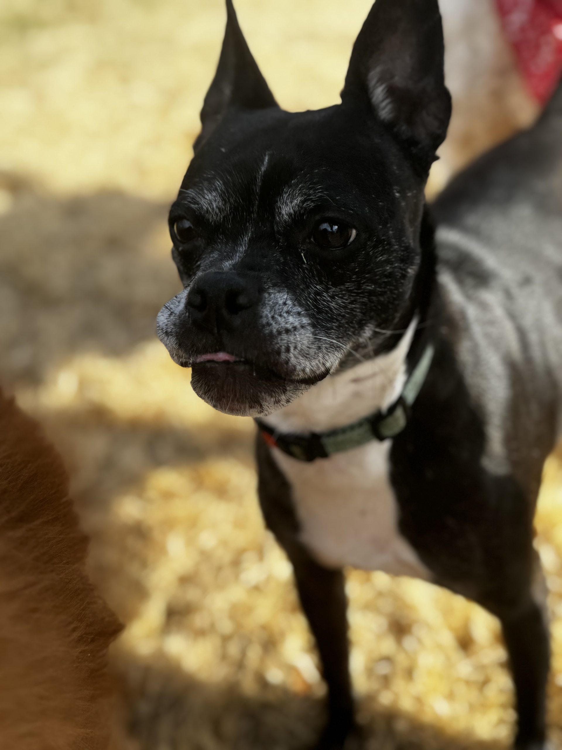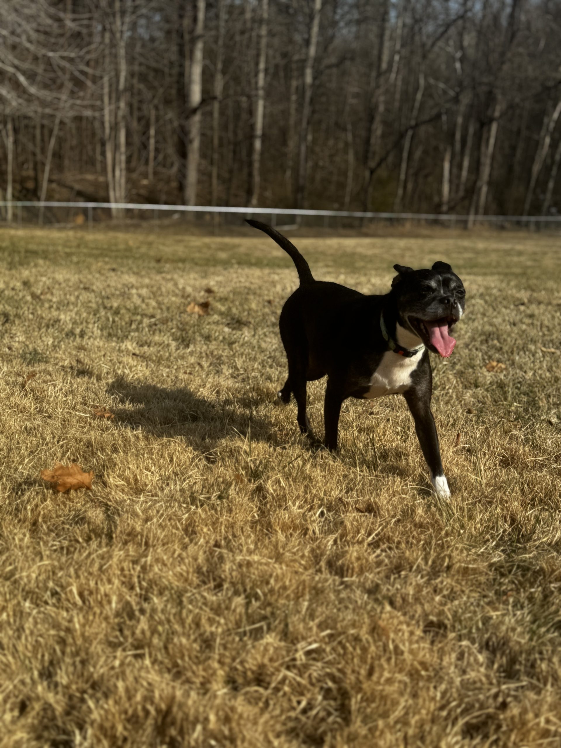 Benni is a wonderfully balanced mix of snuggle companion and independent little adventurer. At 7 years old, she still has the energy and playfulness of a much younger pup - you'd never guess her age from her joyful spirit. Benni is a mixed breed with a slightly longer snout, expressive eyes, and a constantly wiggling tail. She's a bit larger than a typical Boston Terrier but still firmly in the small to small-medium size range. Benni comes with her crate, bed, food container, clothes and toys - all lovingly passed along after her owner sadly passed away. She's ready to bring comfort, joy and companionship to her next family.
