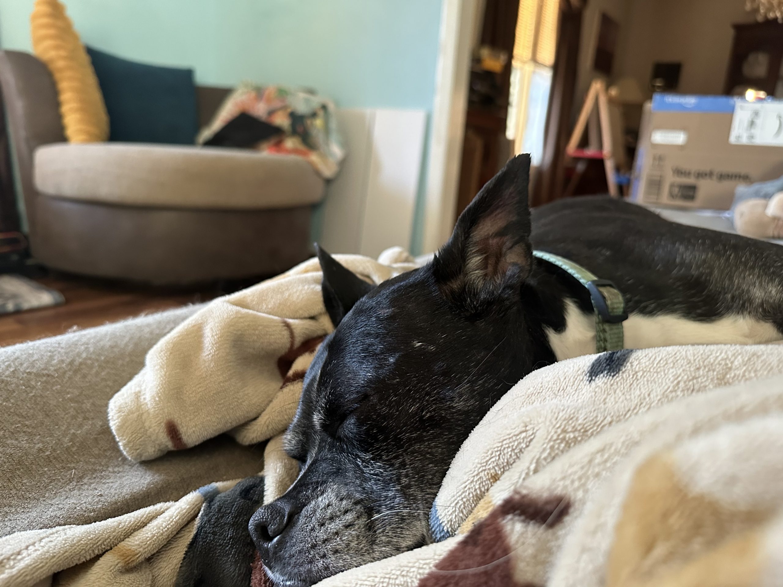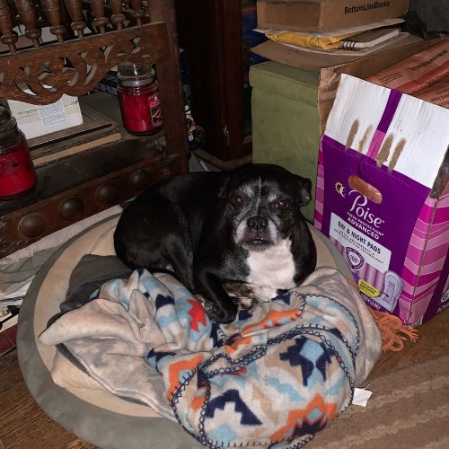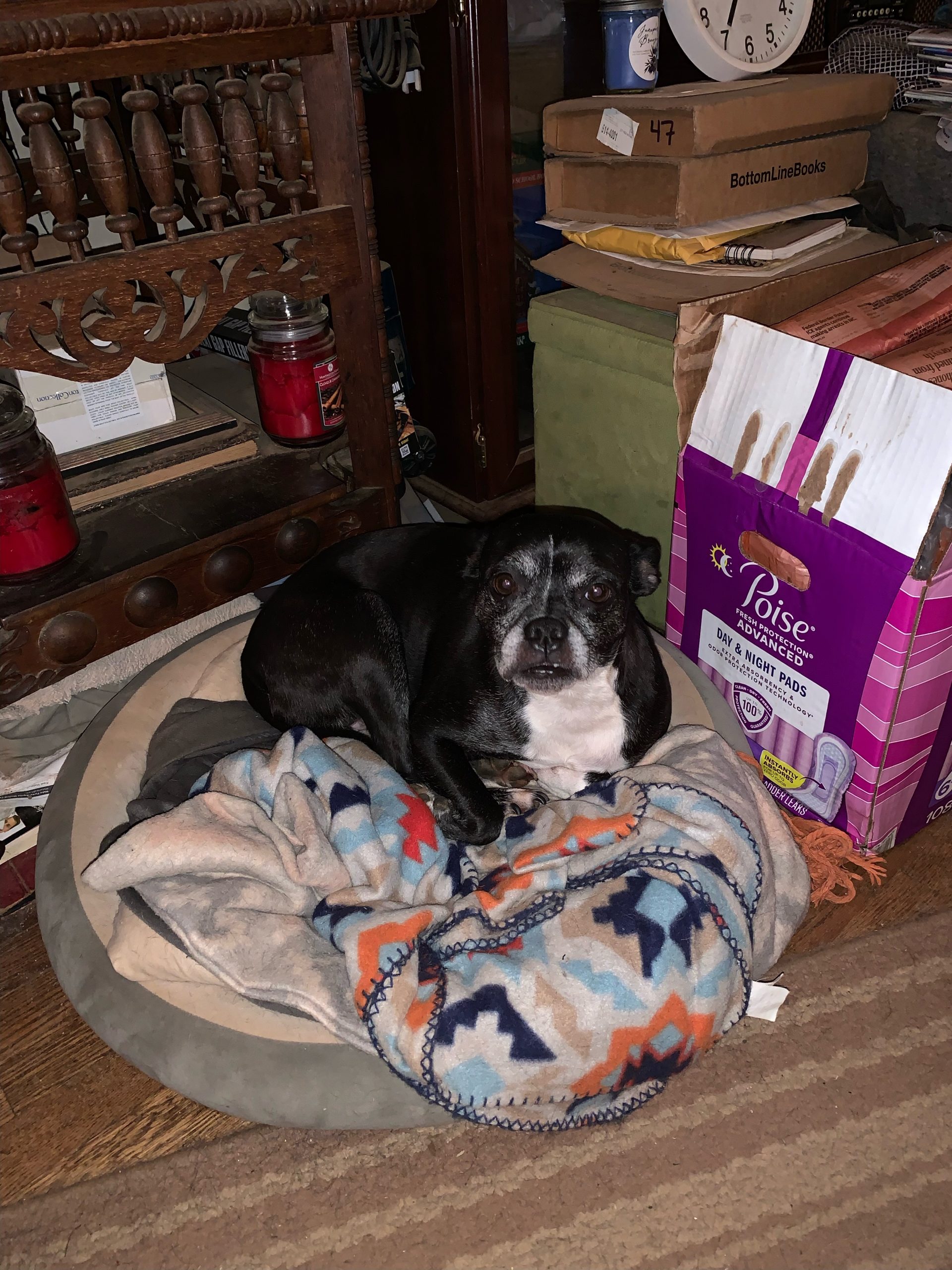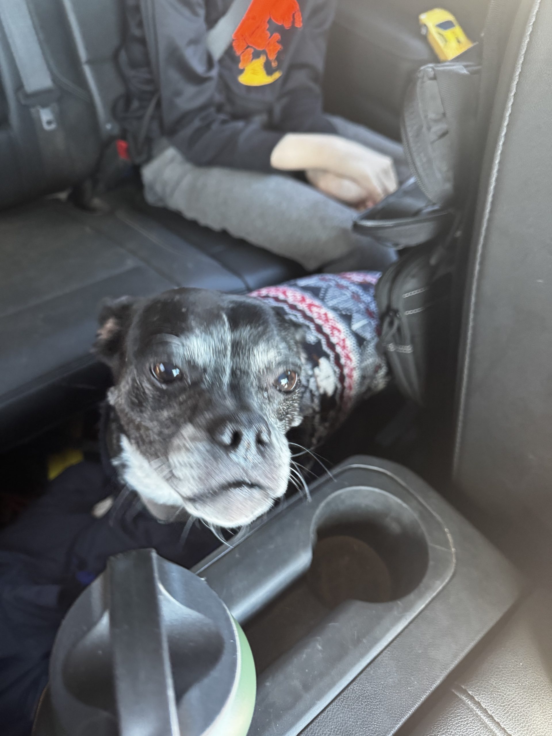 Benni is a wonderfully balanced mix of snuggle companion and independent little adventurer. At 7 years old, she still has the energy and playfulness of a much younger pup - you'd never guess her age from her joyful spirit. Benni is a mixed breed with a slightly longer snout, expressive eyes, and a constantly wiggling tail. She's a bit larger than a typical Boston Terrier but still firmly in the small to small-medium size range. Benni comes with her crate, bed, food container, clothes and toys - all lovingly passed along after her owner sadly passed away. She's ready to bring comfort, joy and companionship to her next family.