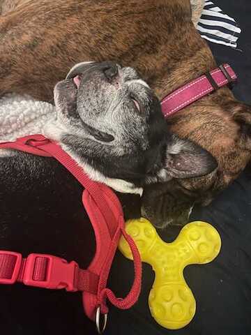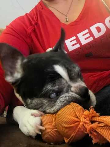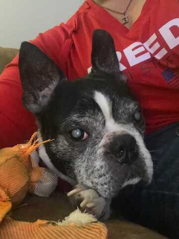 Although Brady is blind, it doesn’t slow him down one bit. He navigates the house confidently and has mastered the stairs and the doggie door. Age is just a number for Brady—he still has plenty of puppy energy! He loves his toys and would happily challenge you to a game of tug‑of‑war.