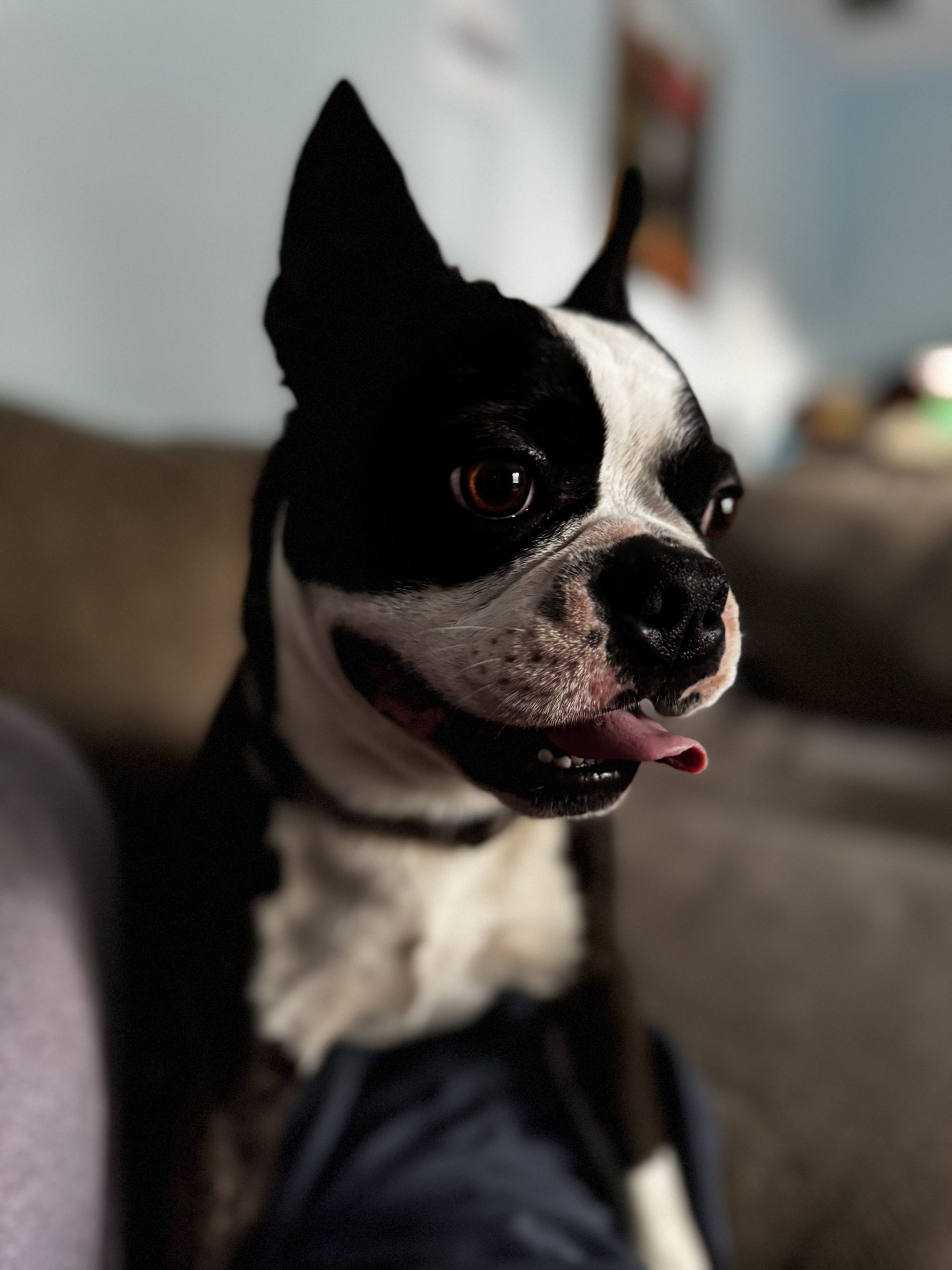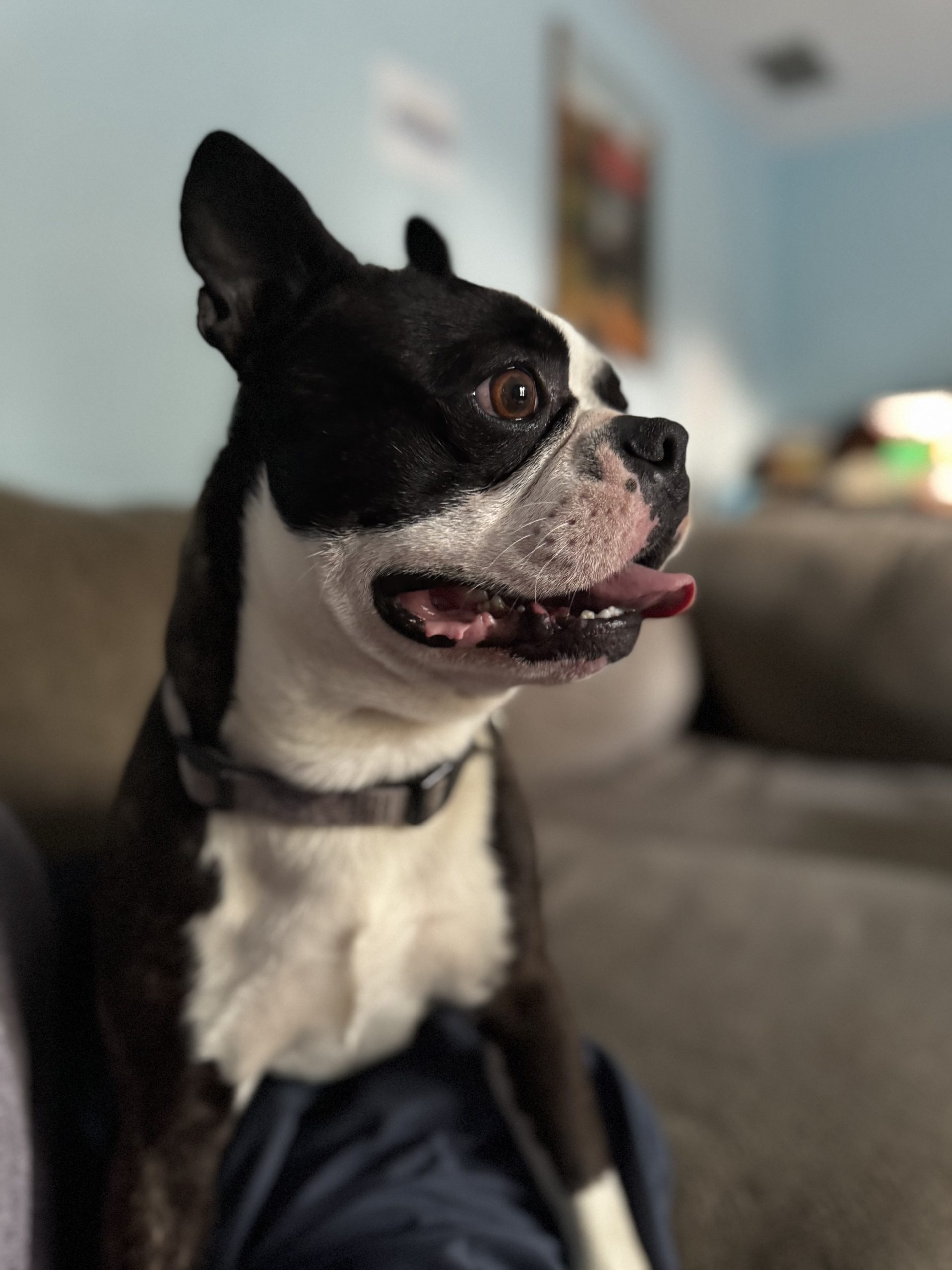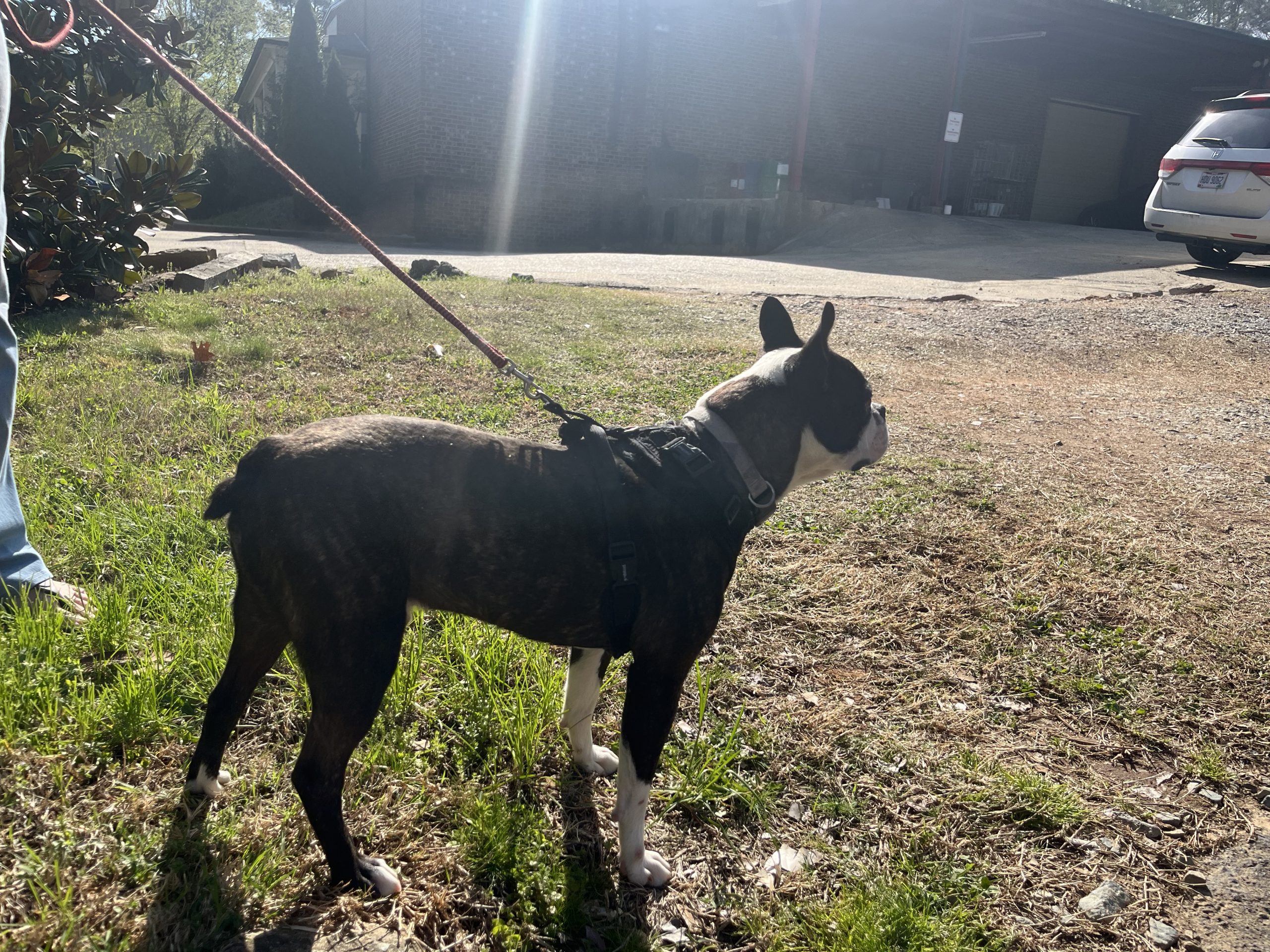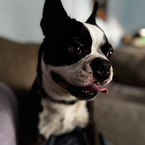 As a pup who is new to the good life of freedom, I do need crating when left alone because I have tons of curiosity and have shown the capability of table surfing and other good natured mischievous Boston behaviors. I will give some sad whines when you help me into the crate (I’m no dummy - I’m not going into captivity on my own!) but I calm down pretty quickly once you’re out the door and I am very happy to have you back when you return. My whines of despair when crated are the only noises my foster family have heard me make so far, so I’m not a huge barker.