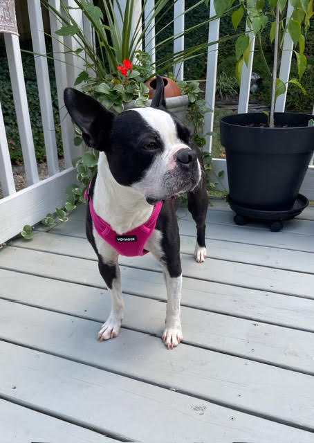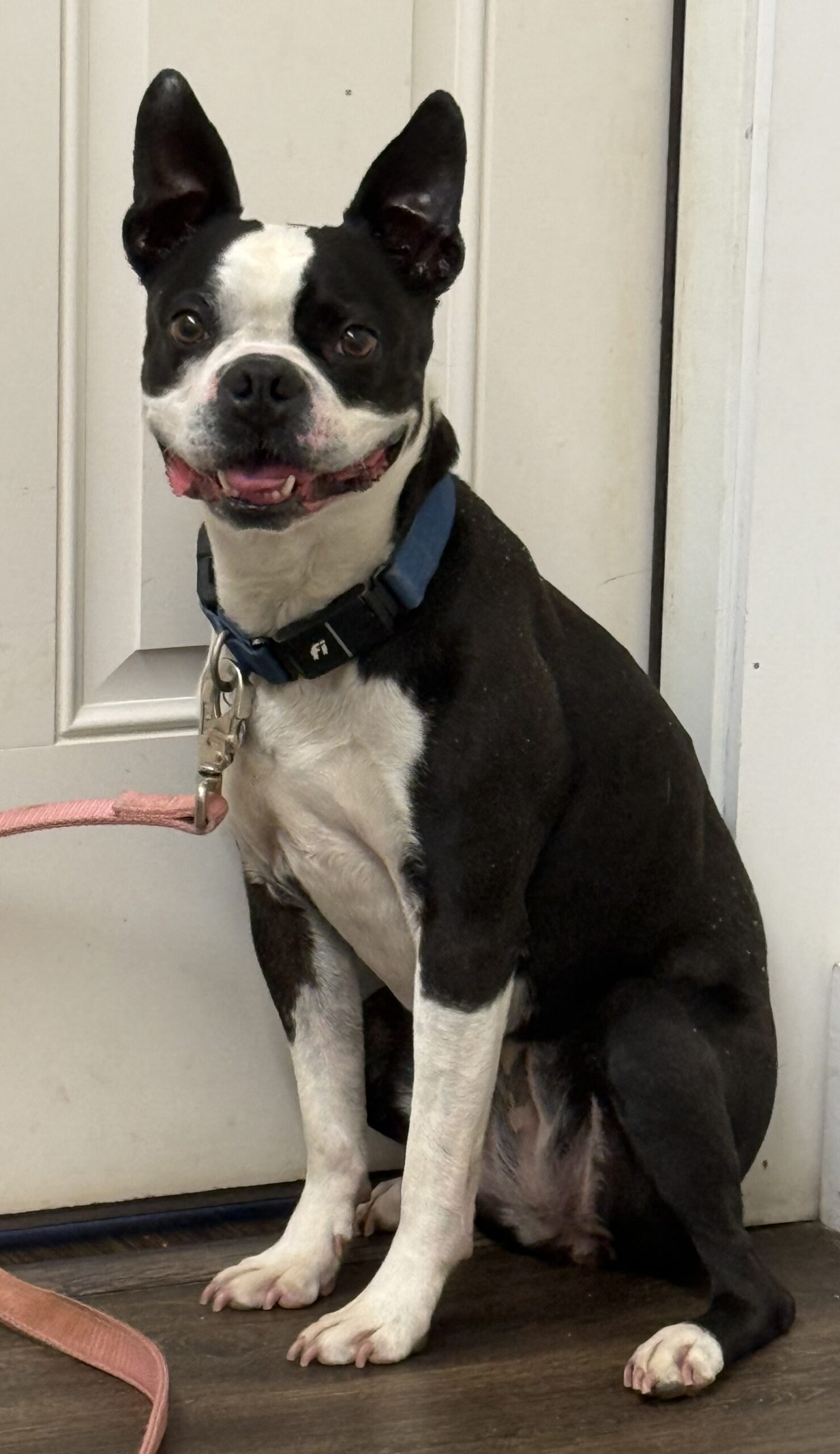 Coco is a wonderful 28-pound Boston Terrier who’s full of love and smarts. At around 8 years old (though she acts like a much younger pup!), Coco already knows her commands—sit, stay, down, and even shake. She’s quick to learn, too; although she used to use a doggie door, she now politely lets you know she needs to go out by standing by the door and giving a little whine.