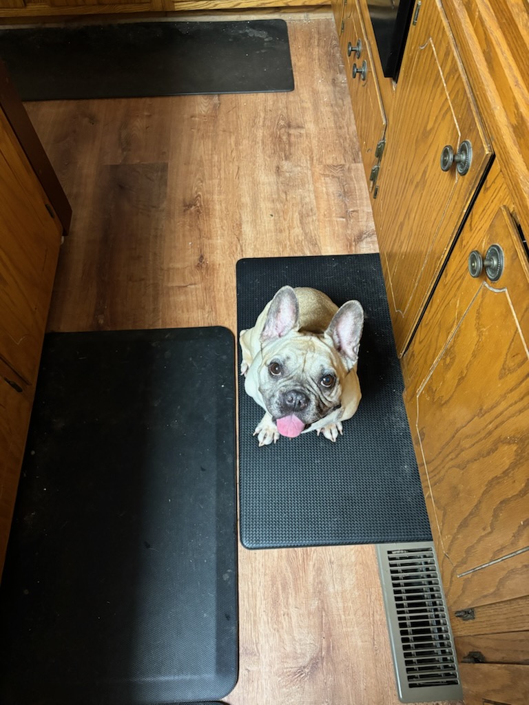 She’s very food motivated and can be pushy about treats/food, sometimes trying to shoo Pru away.