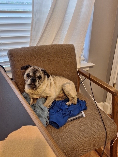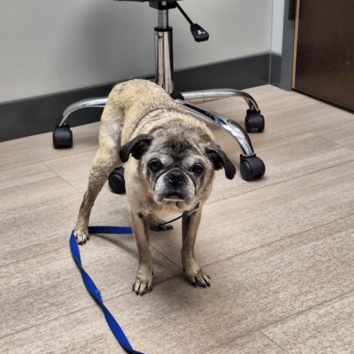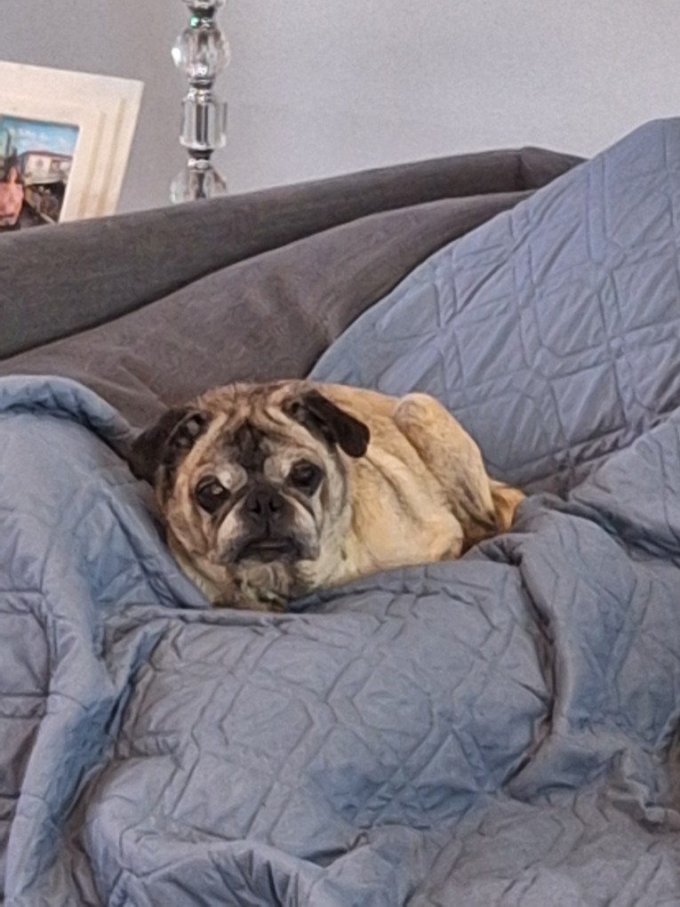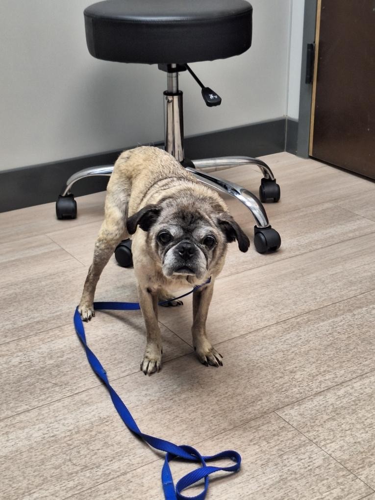 A curious, sweet, snuggly pug with-wait for it-the Guinness World Record for the longest legs ever recorded on a pug. Yes, he's basically a supermodel. Don't let the gray hairs fool you; this distinguished gentleman still has the energy of a puppy. He jumps, runs, plays, and supervises his foster mom with the dedication of a tiny, wiggly life coash. Work? He's there. Cooking? There. Showering? Oh, he's absolutely there.
