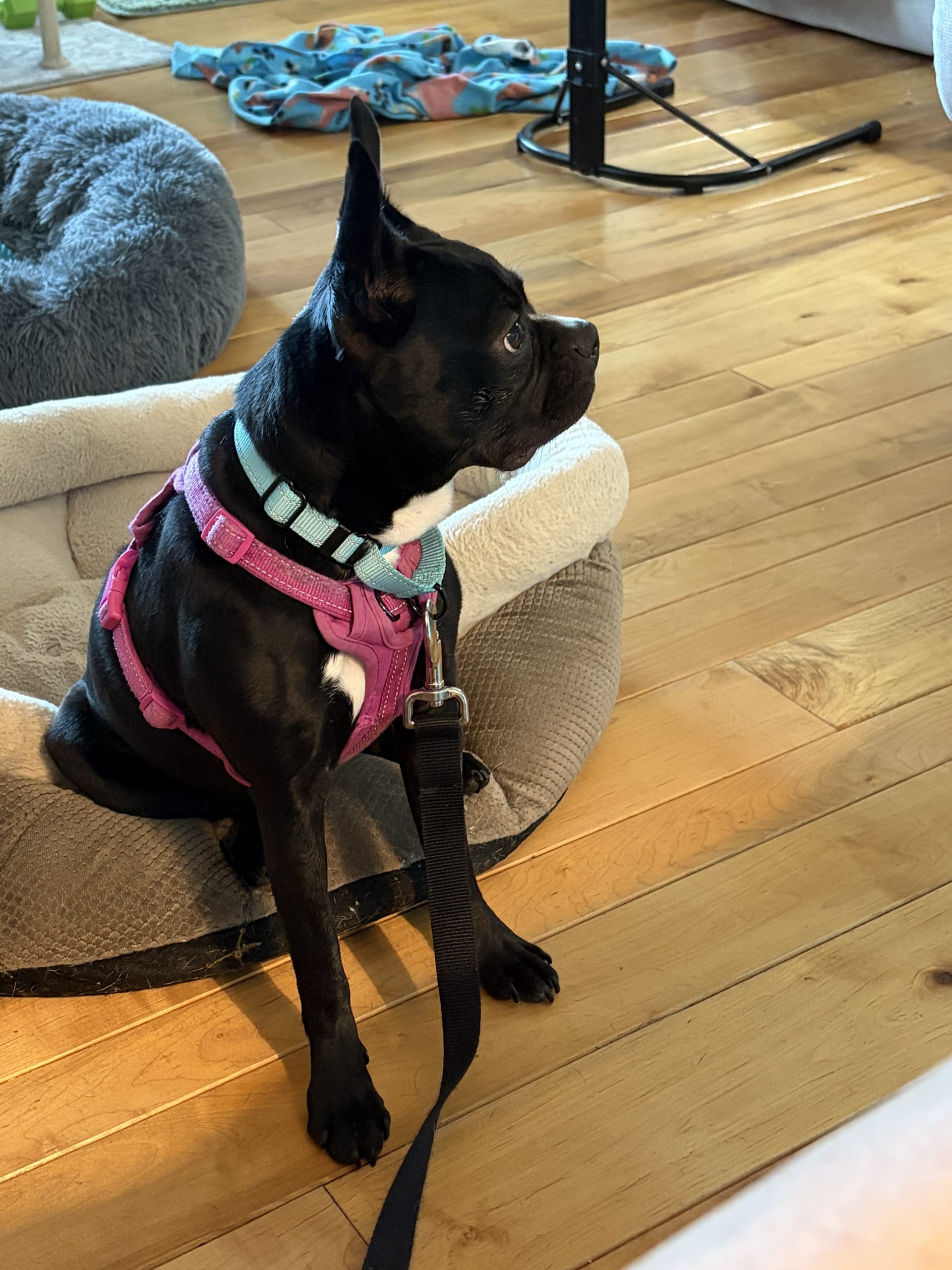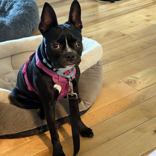 Shadow is still working on her manners—she can get a little jumpy when she’s excited—so she’d do best in a home without very young toddlers. She appears to be house-trained (no accidents so far) and is crate trained, too. She doesn’t show a strong prey drive and may do fine with cats, though she might need a kitty friend who can set boundaries.